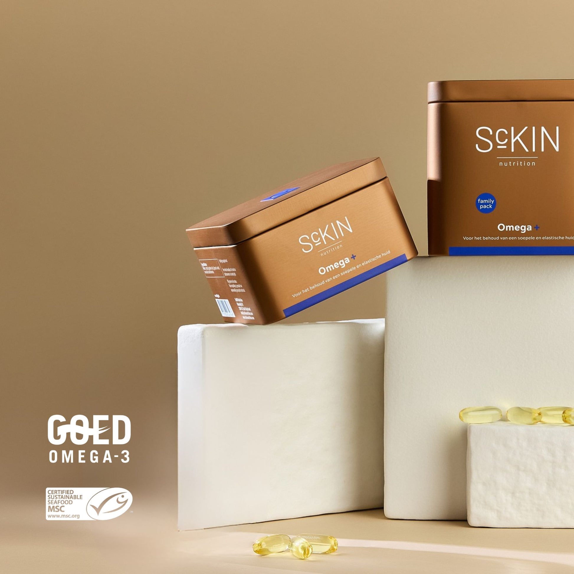 Ja, das Fischöl in Omega+ stammt aus nachhaltiger Fischerei. Dies ist an den MSC- und GOED-Omega-3-Siegeln auf der Dose erkennbar, die für Qualität und Nachhaltigkeit stehen.